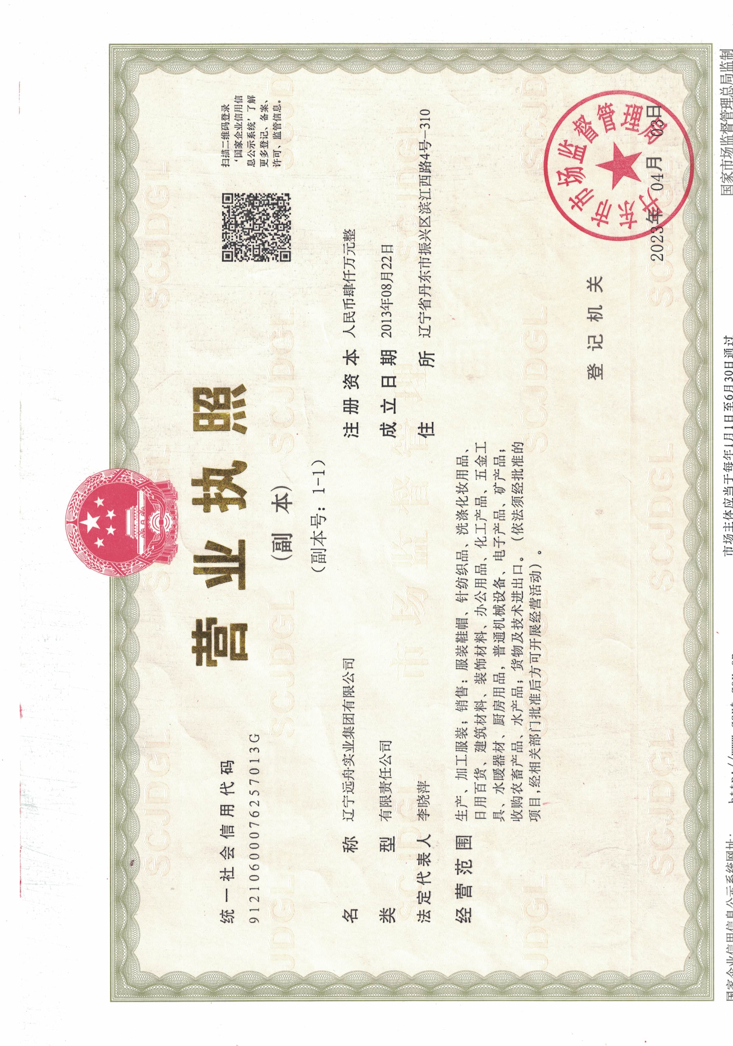 遼寧遠(yuǎn)舟實(shí)業(yè)集團(tuán)有限公司創(chuàng)立于2013年,注冊資金4000萬元,集團(tuán)由丹東遠(yuǎn)舟貿(mào)易有限公司、丹東昱豪制衣有限公司、丹東三江國際貨運(yùn)代理有限公司三大核心業(yè)務(wù)為主的子公司組成。是一家集服裝加工、銷售、進(jìn)出口貿(mào)易、國際貨運(yùn)代理、農(nóng)產(chǎn)品種植、水產(chǎn)品養(yǎng)殖于一體的綜合性企業(yè)。公司位于丹東市振興區(qū)濱江西路柏林會(huì)都1號(hào)樓。